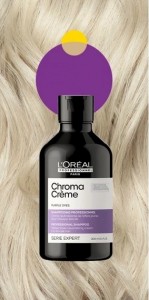 Loreal Chroma Creme Purple Dyes для очень светлых окрашенных либо натуральных оттенков блонд, нейтрализует нежелательные желтые тона и придает холодный платиновый блонд.